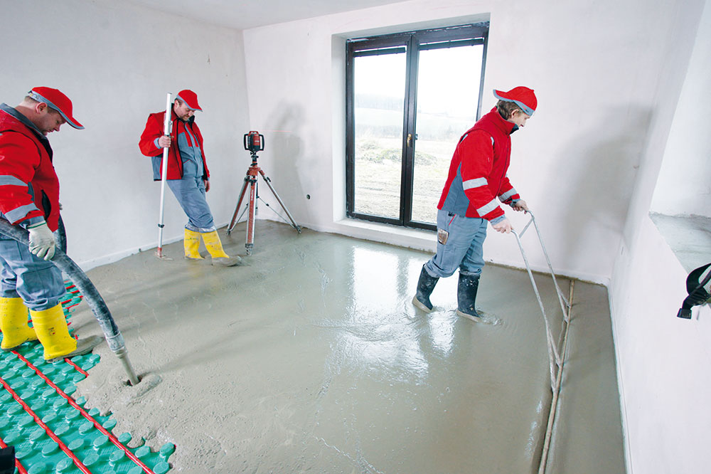 Zákazník nás oslovil s poptávkou instalace podlahového vytápění v rodinném domě. V první řadě jsme před pokládkou podkladového polystyrenu provedli instalaci podomítkové skříně, do které se umístí rozdělovač pro podlahové vytápění. Poté jsme celou plochu podlahy pokryli podkladním polystyrenem a po obvodu stěn jsme nainstalovali dilatační pás o tloušťce 8 mm a výšce 150 mm. Položili jsme polyetylenovou folii, polystyren a něj separační folii, čímž jsme zamezili zatékání anhydridu do polystyrenu. Topný kabel jsme zafixovali do oček ve předem vypočtených roztečích a nakonec topné kabely zalili anhydridem.